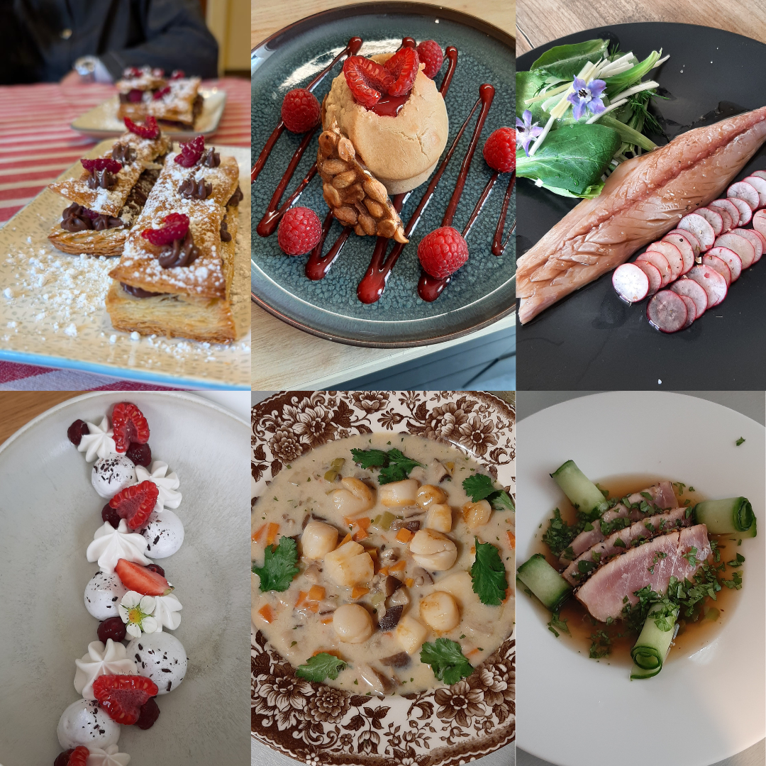 Vous pourrez tranquillement déguster les plats préparés avec vos proches et poursuivre le cours par un repas digne d’un restaurant. Les menus sont prévus pour 4 couverts !